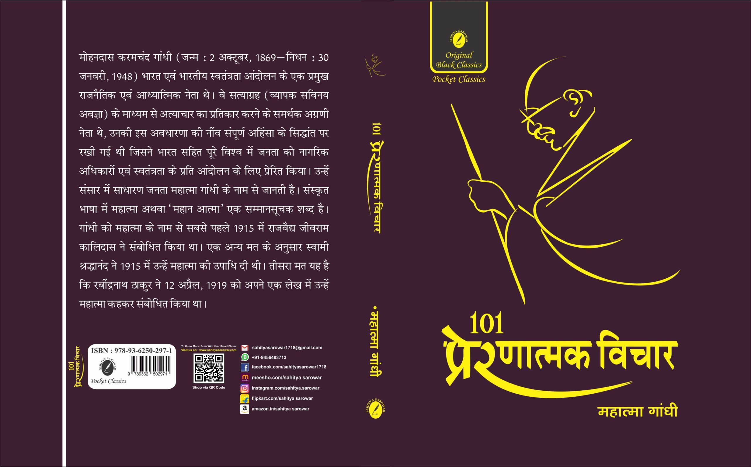 101 Prernatmak Vichar by Mahatma Gandhi is a collection of inspiring and thought-provoking quotes by the Father of the Nation. These quotes reflect his vision of truth, non-violence, simplicity, self-discipline, and moral strength.