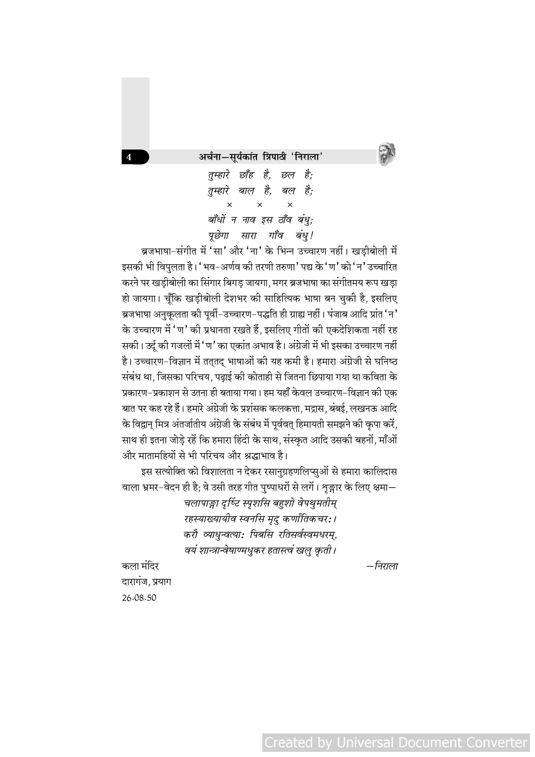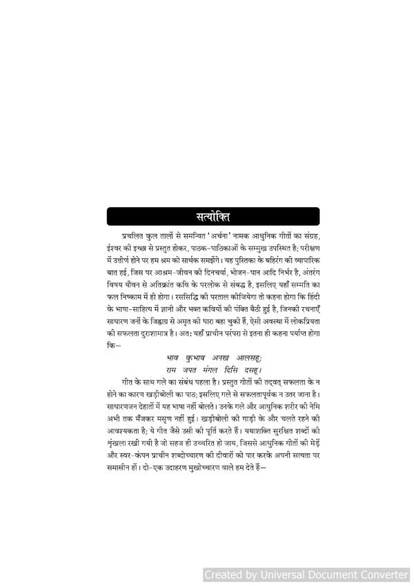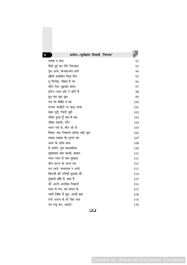 The poems in Archna explore human emotions, social consciousness, and spiritual reflection, reflecting Nirala’s vision of a progressive, empathetic society. This edition preserves the authentic text and provides a meaningful reading experience for both academic study and personal enrichment.