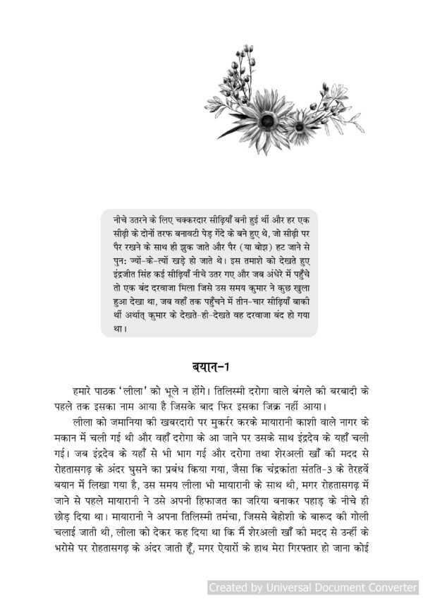 Chandrakanta Santati – Part 5 by Devkinandan Khatri continues the gripping story of Chandrakanta Santati, full of suspense, romance, and adventure. Readers will follow royal conspiracies, heroic exploits, and cunning strategies, all narrated in Khatri’s engaging and vivid Hindi prose. Part 5 further develops the beloved characters and intricate plots, keeping fans of the series completely captivated. Available in paperback, this edition is perfect for students, casual readers, and collectors of classic Hindi literature.