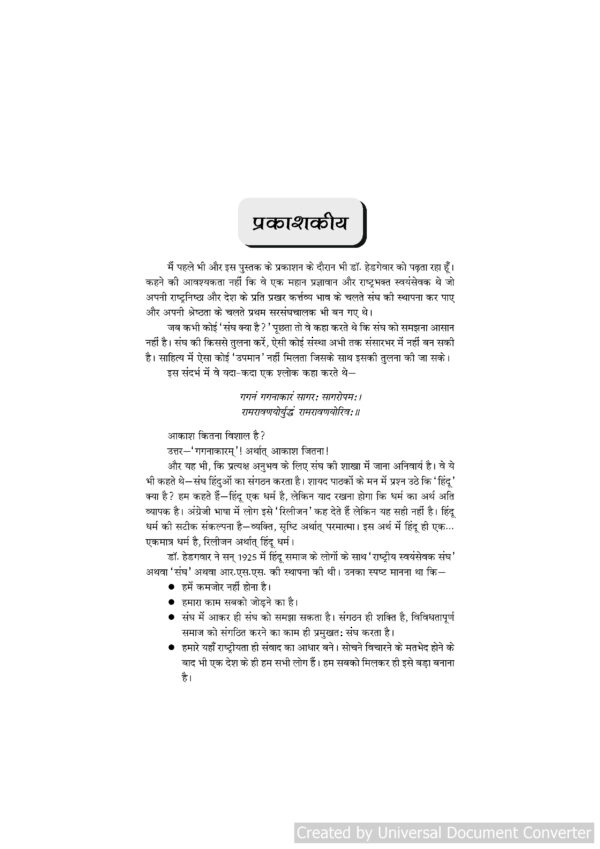 Dr. Keshav Baliram Hedgewar (Prernadayak Jeevani) is an inspiring biography that highlights the life, vision, and dedication of the founder of Rashtriya Swayamsevak Sangh (RSS). The book presents his struggles, leadership qualities, and his mission to awaken national pride and unity among Indians.