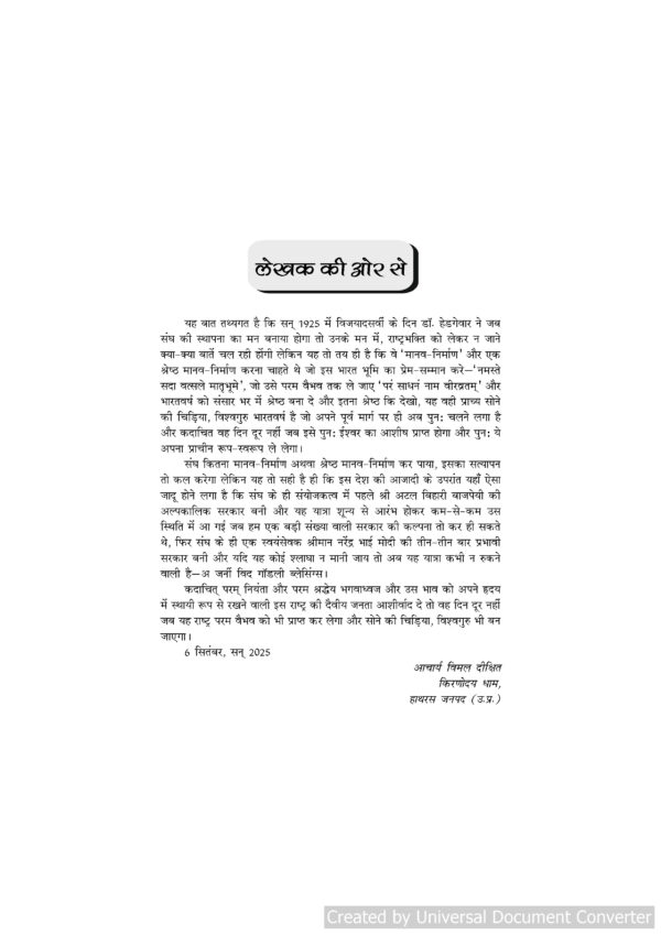 Rashtriya Swayamsevak Sangh Evam Unke Sarsanghchalak by Acharya Vimal Dixit is a detailed study of the Rashtriya Swayamsevak Sangh (RSS) and its leadership. The book explores the origin, philosophy, ideology, and contribution of the RSS in shaping India’s socio-political and cultural landscape.