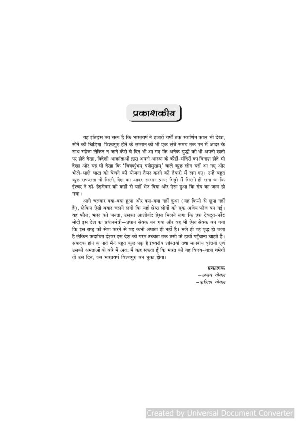 The author provides insightful narratives about the Sarsanghchalaks (chief leaders) of the Sangh, their vision, organizational skills, and their role in nation-building. Written in simple Hindi, this book is a valuable resource for students, researchers, political science enthusiasts, and readers interested in modern Indian history.